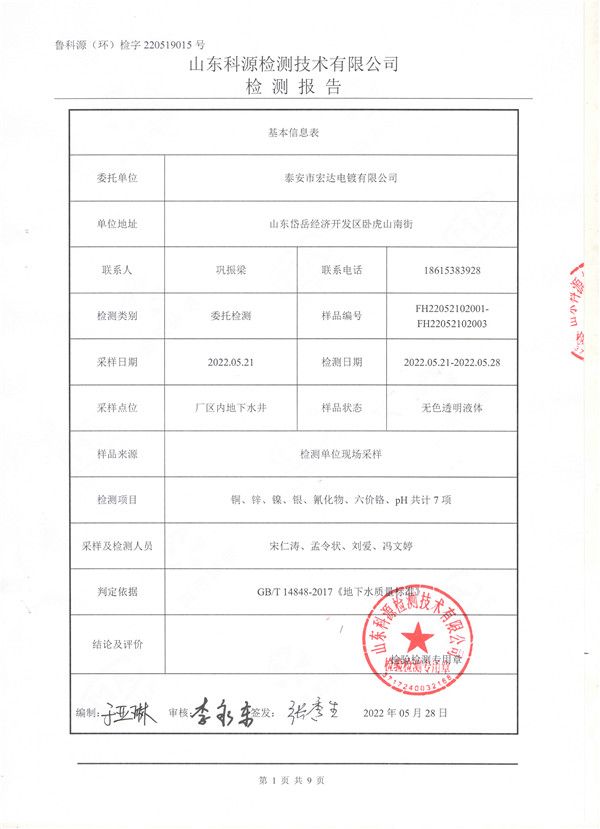 2022年上半年地下水检测报告 2022-6-25 本文被阅读 930 次