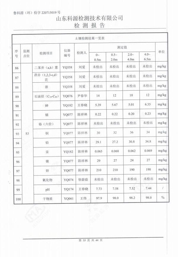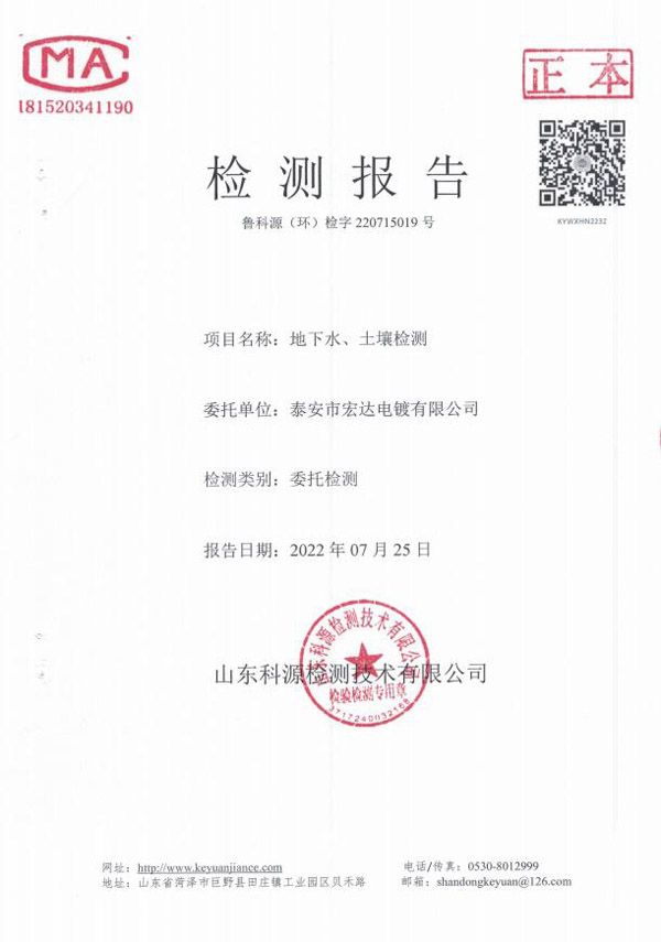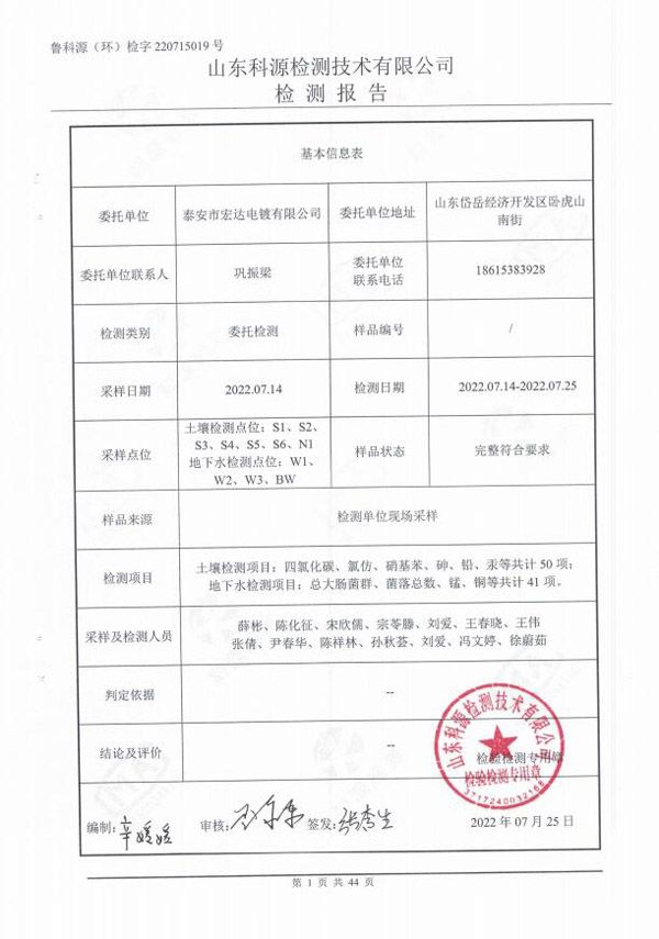 泰安市宏达电镀有限公司地下水、土壤检测报告 2022-8-3 本文被阅读 1015 次