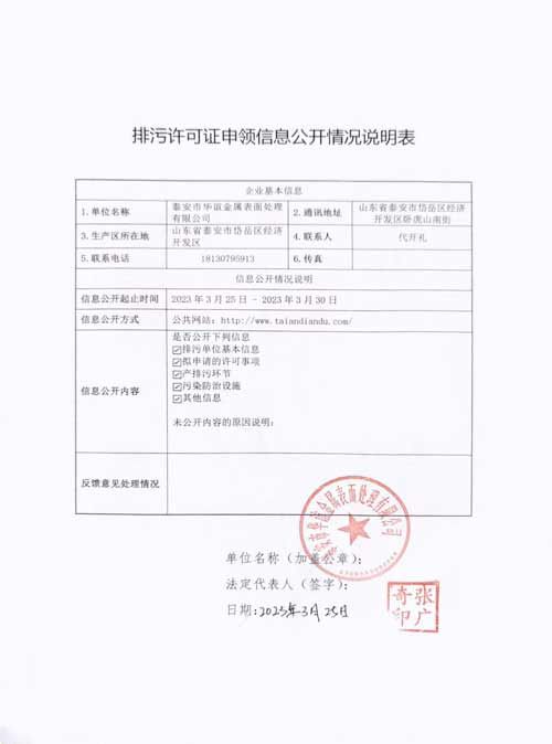 排污许可证申领信息公开情况说明表 2023-3-25 本文被阅读 1392 次