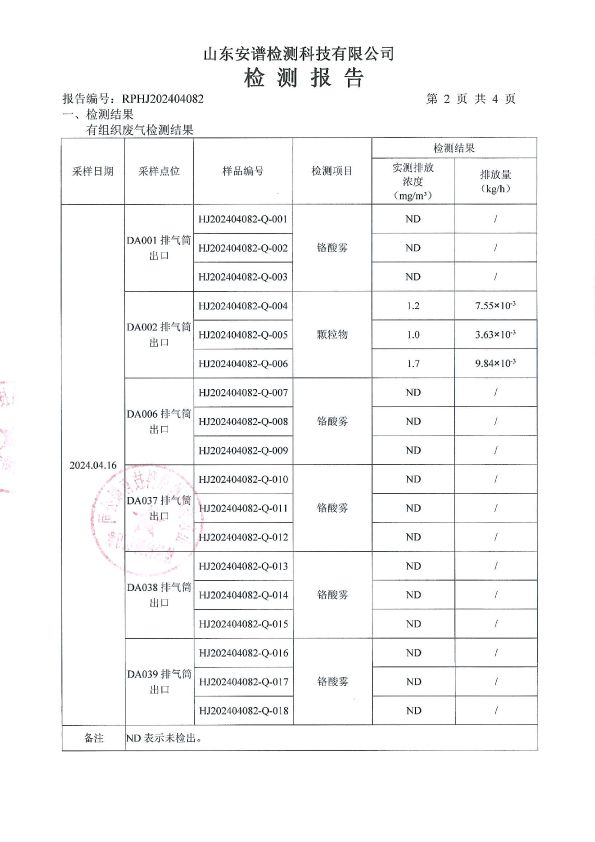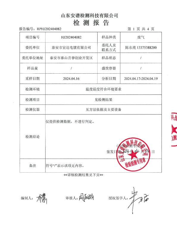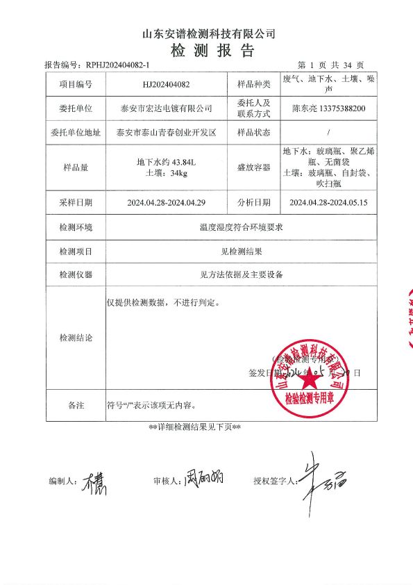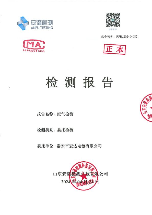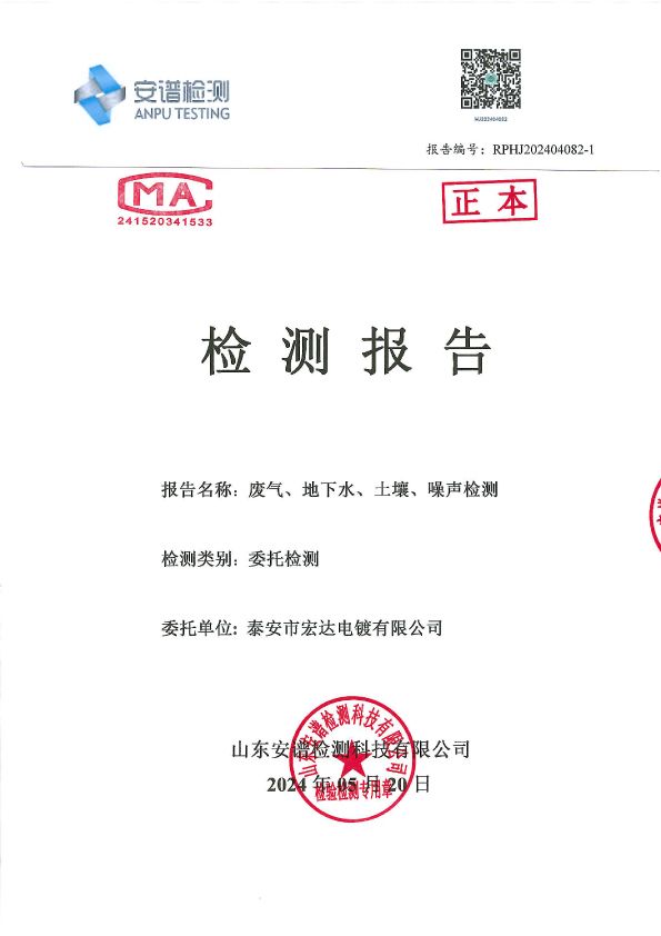 宏达电镀下半年检测报告