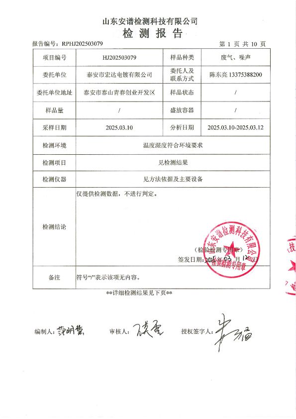 宏达电镀噪声废气上半年 2025-4-28 本文被阅读 61 次